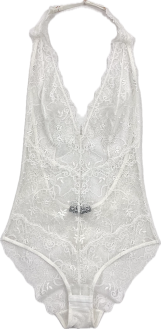 ALL LACE AMOUR DEEP PLUNGE HALTER BODYSUIT ECRU